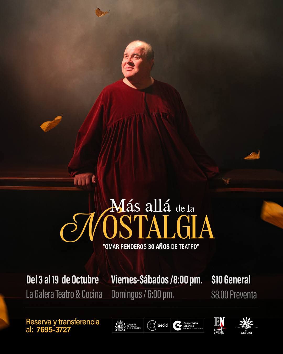 « Todos los Eventos Más allá de la NOSTALGIA octubre 3 – 8:00 PM – octubre 19 – 8:00 PM Más allá de la Nostalgia, del 3 al 19 de octubre en La Galera Teatro & Cocina. Reserva ya tus entradas al 7695-3727. $10 General | $8 Preventa Viernes y sábados 8:00 p.m. | Domingos 6:00 p.m. Añadir al calendario Google Calendar iCalendar Outlook 365 Outlook Live Detalles Comienza: octubre 3 – 8:00 PM Finaliza: octubre 19 – 8:00 PM Precio: $10.00 Etiquetas del Evento:#masalladelanostalgia, #teatro Compartir con las herramientas nativasCompartirCopiado al portapapeles Haz clic para compartir en WhatsApp (Se abre en una ventana nueva)WhatsApp Haz clic para compartir en Facebook (Se abre en una ventana nueva)Facebook