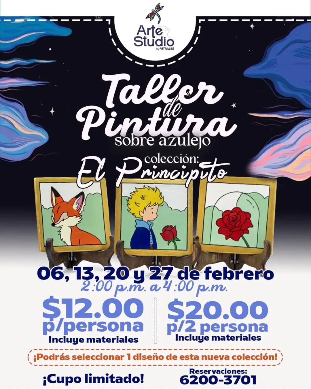 Nuestro taller de pintura sobre azulejo está inspirado en El Principito, recordándonos que “lo esencial es invisible a los ojos”, pero se vuelve único cuando lo pintamos y lo compartimos.