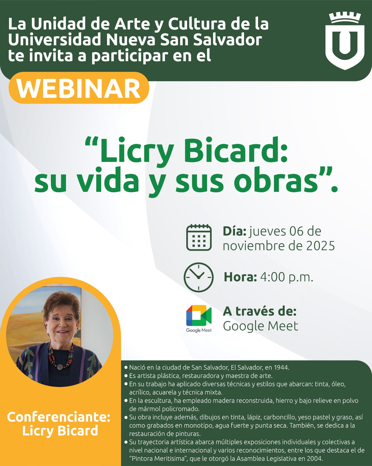 La Unidad de Arte y Cultura de la UNSSA te invita a participar en el webinar: “Licry Bicard: su vida y sus obras”.