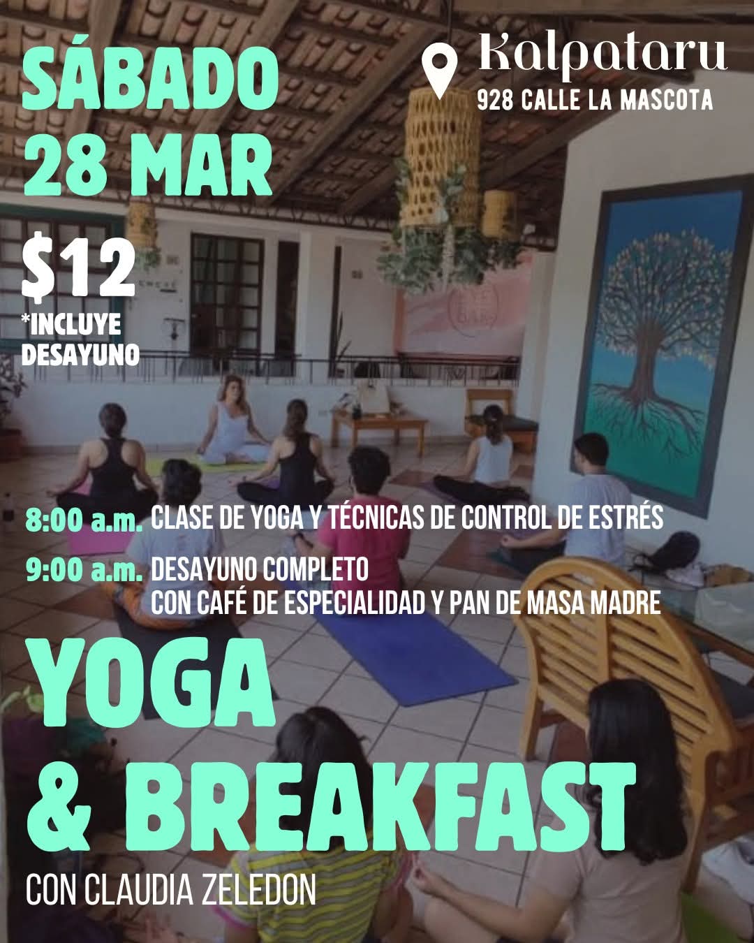 Una mañana guiada por Claudia Zeledón, con su característica energía solar y positiva, hace que todo fluya: yoga + técnicas de control de estrés para soltar, respirar y recargar.