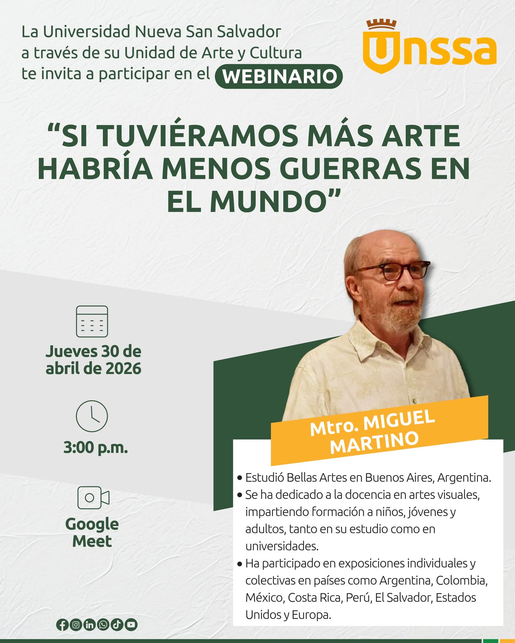 La Unidad de Arte y Cultura de la UNSSA te invita a participar en el webinario: "Si tuviéramos más arte habría menos guerras en el mundo". Nos acompañará el Mtro. […]