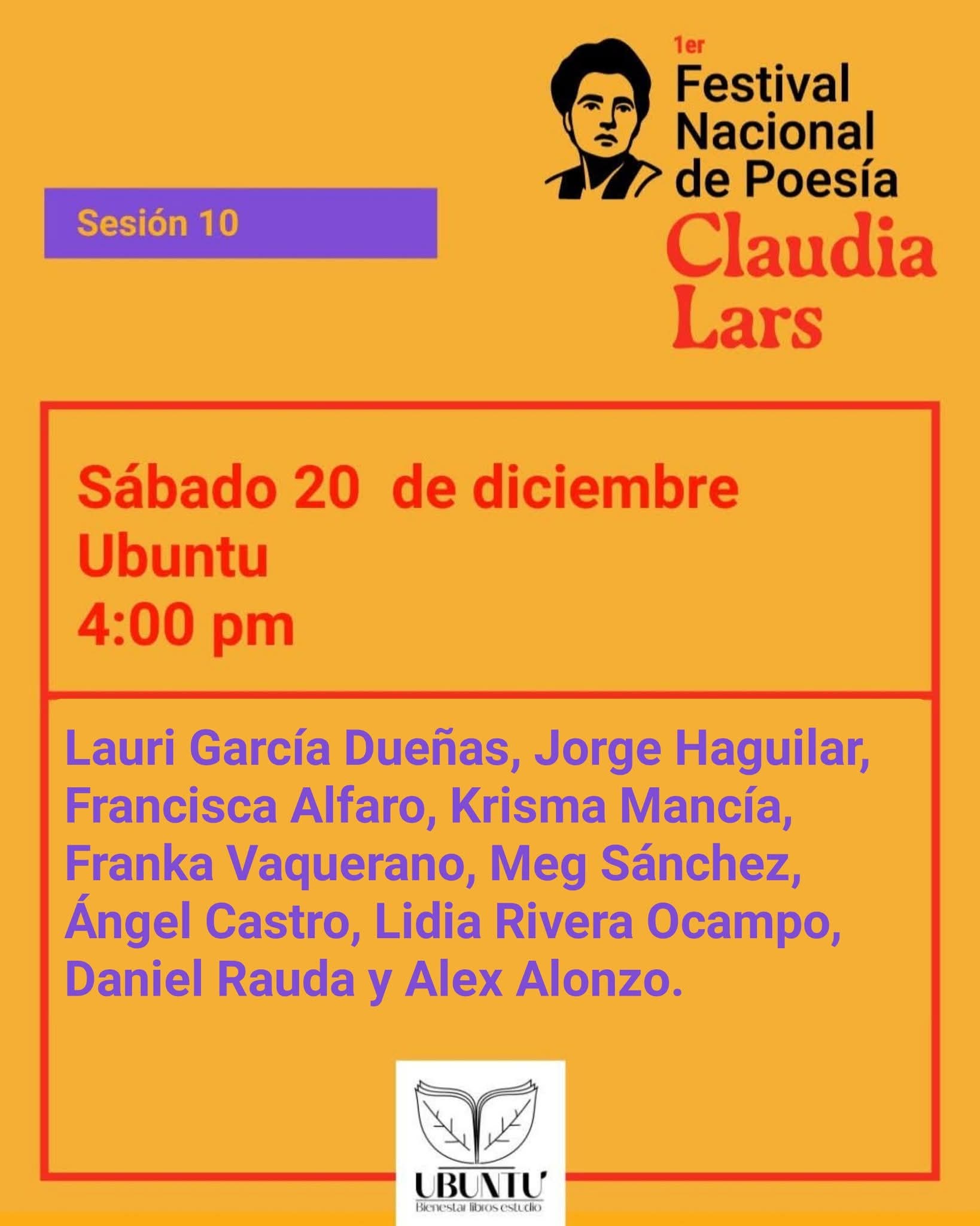 Festival Nacional de Poesía Claudia Lars. Viernes 19 y sábado 20 de diciembre el Festival Nacional de Poesía Claudia Lars estará en el Centro Cultural Leyla, Col. La Rábida, San […]