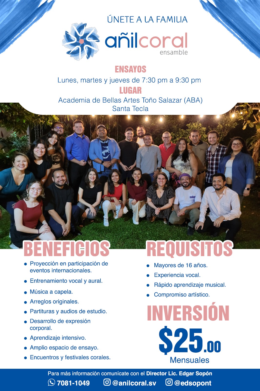 Añil Coral Emsamble en Academia de Bellas Artes. Toño Salazar (ABA) Santa Tecla.
