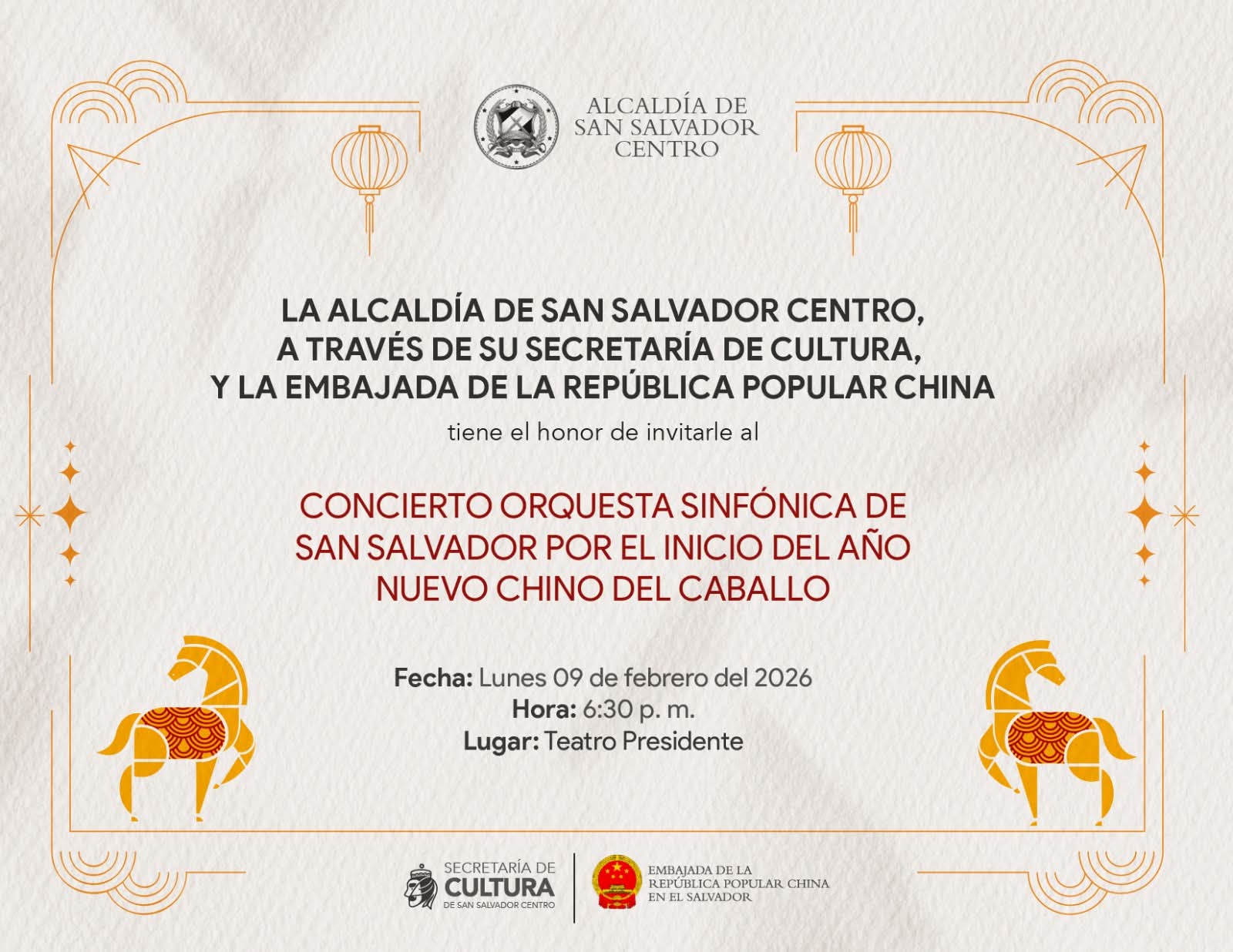 Teatro PresidenteLes invitamos a celebrar juntos el Nuevo Año Chino, dedicado al Caballo de Fuego. Con el Concierto de la Orquesta Sinfónica de San Salvador.🎵🎶 Lunes 9 de febrero 2026 6:30 […]