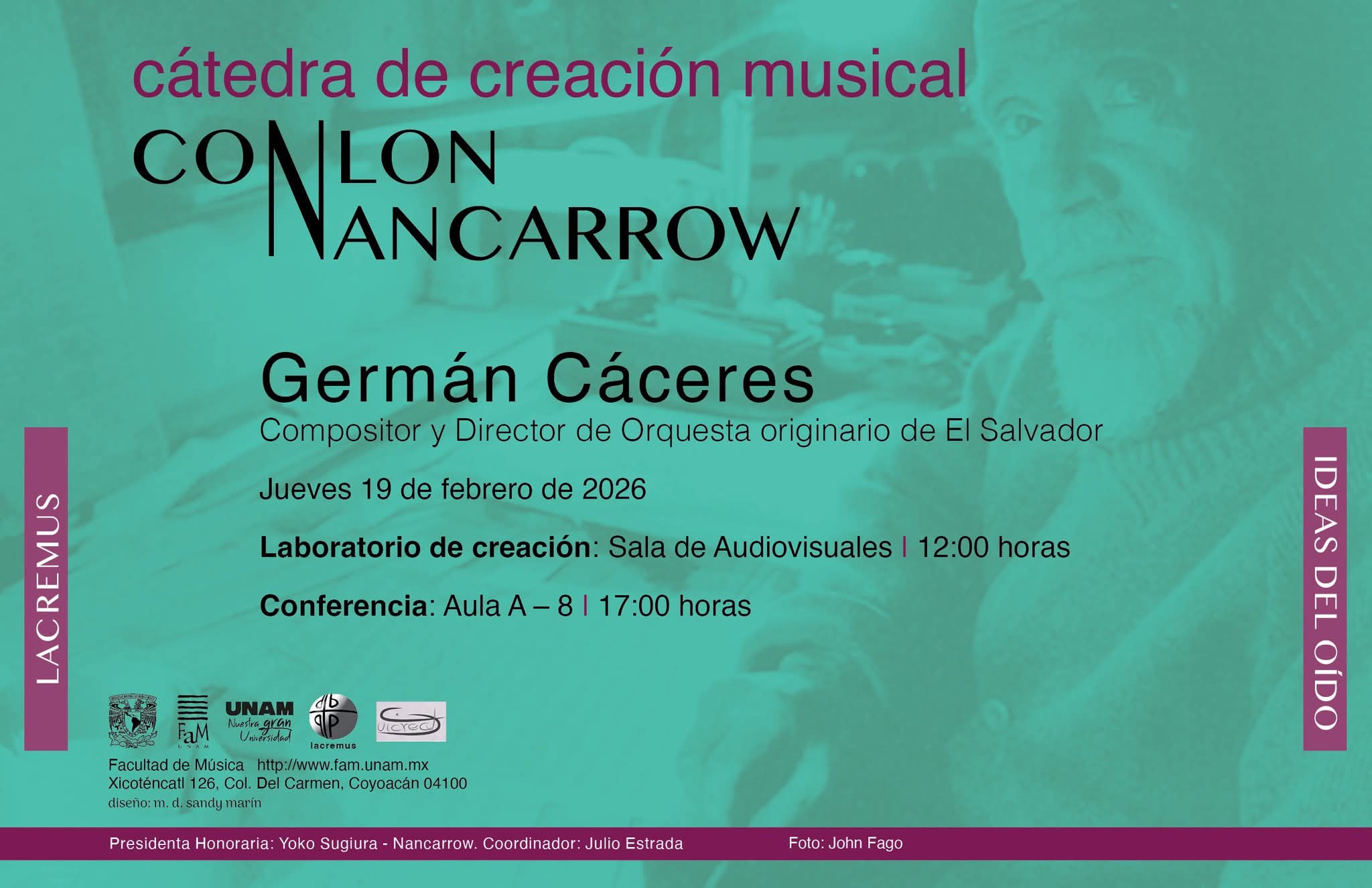 La Cátedra de Creación Musical ᴄᴏɴʟᴏɴ ɴᴀɴᴄᴀʀʀᴏᴡ, te invita a la conferencia que impartirá Germán Cáceres, compositor y director de orquesta. 📅 19 de febrero 2026 - 12:00 horas 📍 […]