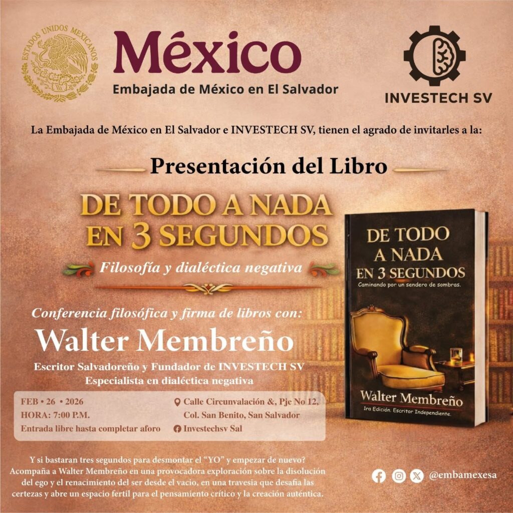📚✨ Presentación del libro: De todo a nada en 3 segundos. La Embajada de México en El Salvador e INVESTECH SV te invitan a una conferencia filosófica y firma de […]